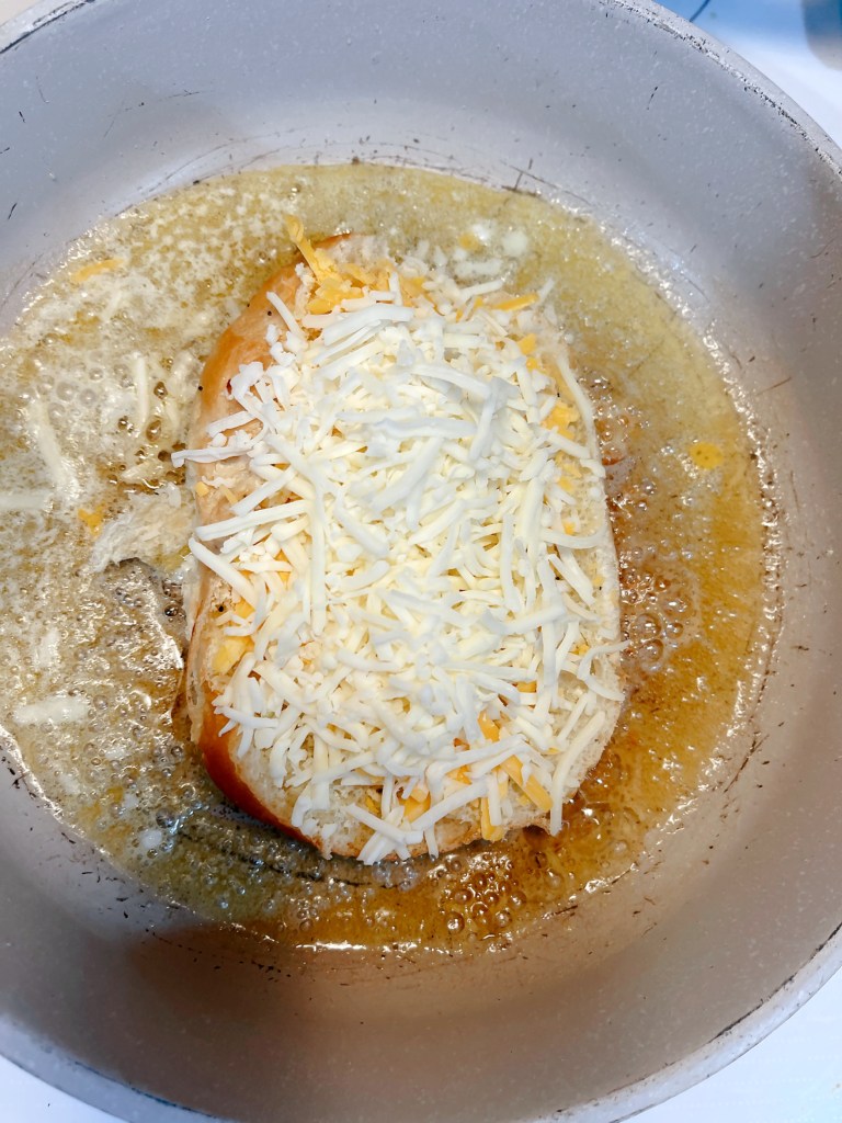 I will also use whatever bread I have in the house. This time around I had some left over French onion buns and they made this grilled cheese sandwich—chefs kiss 🤌🏼.